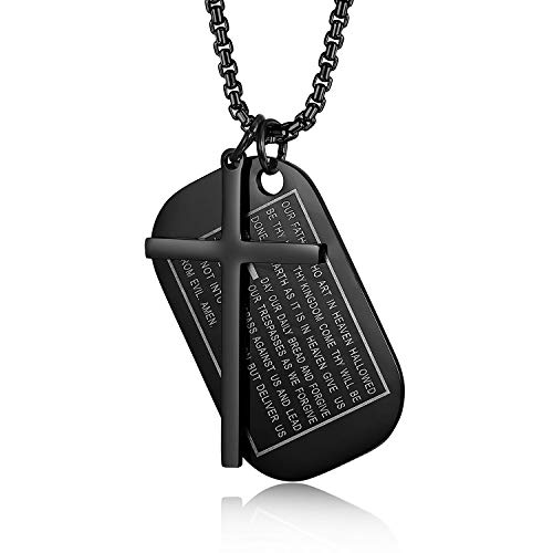 OIDEA Halsband med hänge, hundbricka, bön, bibelcitat, kors, rostfritt stål, för män och kvinnor, Jesus-krucifix med kedja, vetelänk, guld/svart/silver, Rostfritt stål