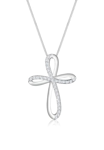 Elli Premium halsband dam kors hänge med zirkoniakristaller i 925 sterlingsilver, 450, Kristall, Zirkonia