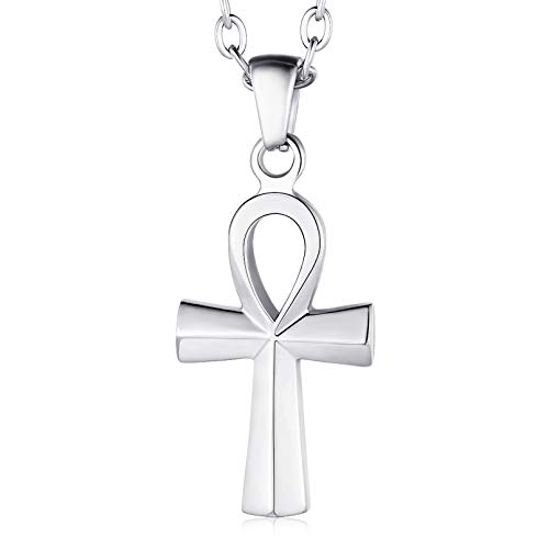 JKJF 2 stycken egyptiska ankh kors hängande halsband i rostfritt stål ankh hänge kedja vintage koptisk ankh kors religiös gotisk hiphop punk halsband för män pojkar silver svart
