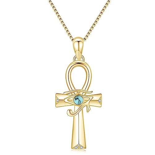 Midir&Etain Ankh kedja 925 sterling silver horusöga hänge halsband egyptiskt halsband ankh kors smycken gåva för kvinnor män, N, Sterlingsilver, Turkos
