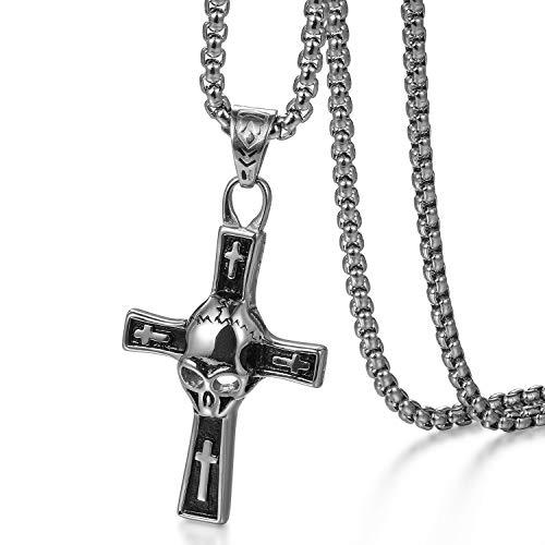 JeweBella Korshalsband för män, rostfritt stål, halsband med kors, hänge, smycken, klassiskt kristet halsband, silver/guld/svart halsband, 61 cm längd