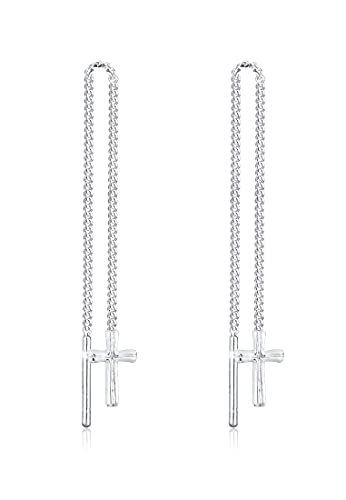 Elli Örhängen damer kreoler kors hänge tro religion i 925 sterlingsilver, En Storlek, Precious Metal, Utan