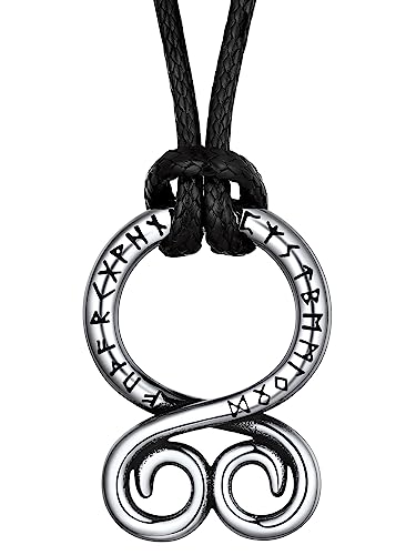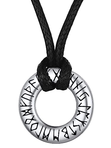 FaithHeart Viking-halsband för män, nordiska runor, cirkel/stång/kors, hänge, talisman, amulett, smycken i rostfritt stål, kedja, läderhalsband, med presentförpackning, Fuskläder