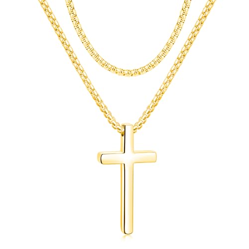 PROSTEEL Anpassning tillgängligt, män/kvinnor kors hänge halsband med kedja – 55 + 5 cm, guldpläterad/316L rostfritt stål (presentask), Ingen ädelsten