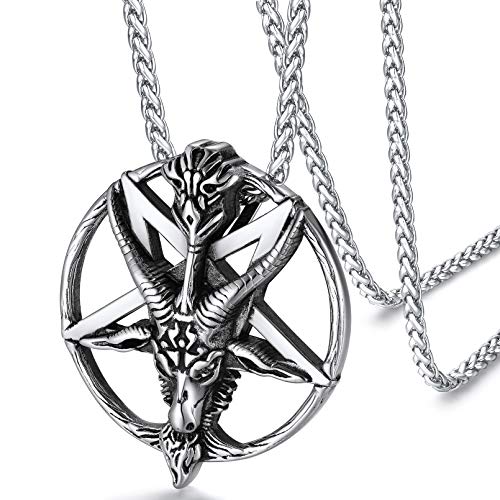 FaithHeart Personligt sataniskt halsband för män kvinnor djävul smycken Baphomet inverterat pentagram get/satan kors hänge med kedja i rostfritt stål (presentförpackning skick), 48 month, Rostfritt stål