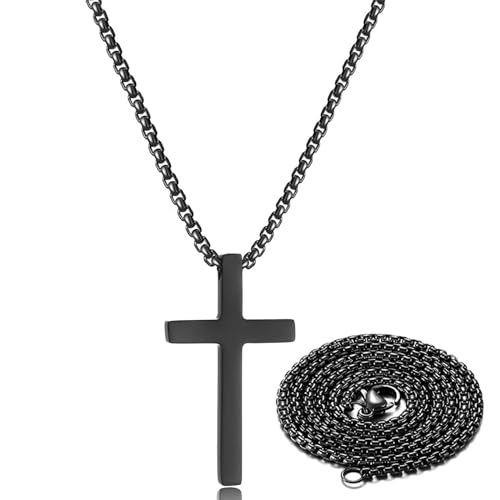 Moguri kors halsband för män, 60 cm rostfritt stål hänge kors, kedja, smycken, presentförpackning för pojkar, innehåller 1 st 45 cm lång reservkedja, svart