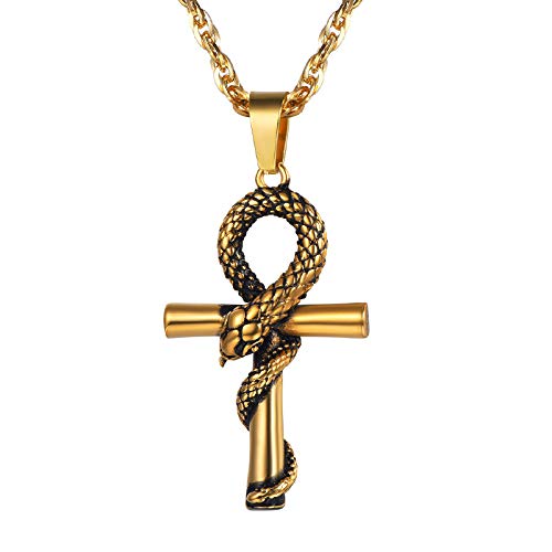 PROSTEEL Justerbar, satanism, ankh, kors, orm, halsband med kedja, 316L rostfritt stål/guldpläterad/svart (med presentask) e Guldpläterad, colore: Ankh-guldpläterad, cod. PSP3298J-EU