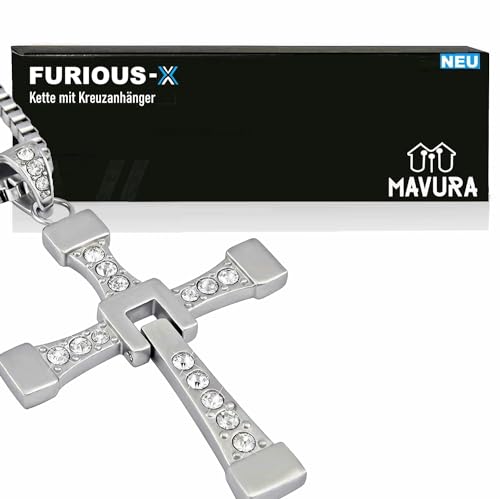 MAVURA FURIOUS-X Kors hals kedja halsband korskedja premium rostfritt stål, vindiesel dominic Toretto Fast Furious Replic, Rostfritt stål