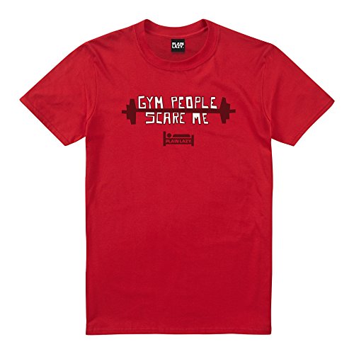 PLAIN LAZY mäns gym människor skrämmma t-shirt, Röd (körsbärsröd), S