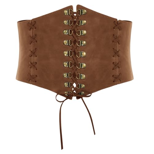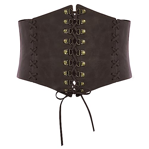 GNAUMORE Bälte kvinnors piratkorsett, bred elastisk midja läderrem, bredd elastisk korsett, midja spets korsett, bälte, piratbälte, retro korsett, midja snörning bälte, Brun, M