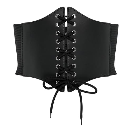 WERFORU Dam brett bälte vintage elastiskt midjebälte falskt läder korsett bälte snörning cinch midjebälte, A-svart, Passend für Taillengröße 76-85cm