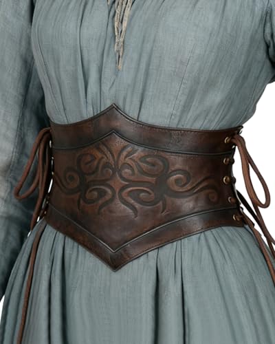 keland medeltida korsett bälte damer korsettbälte läder korsettbälte snörning korsett viking, BRUN, XL passend für Taillengröße 90-100cm