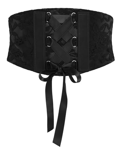 WERFORU dam elastisk bred midja bälte vintage stretch spets up korsett bälte för klänning, A-svart, Länge 73cm( für Taille Größe 65-74cm)