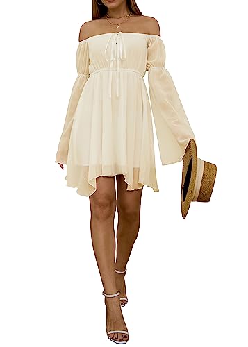 YINGWIN Piratdräkt damklänningar korsett damer chiffongklänning damer off shoulder klänning, Beige, XL