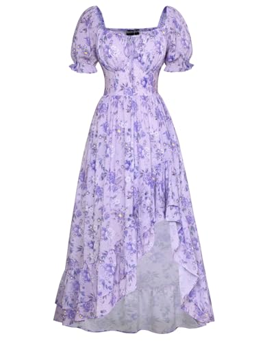 Scarlet darkness kvinnor viktoriansk blommig klänning puff ärmar smockad fyrkantig hals sommar korsett klänning, Ljuslila blommig, XL