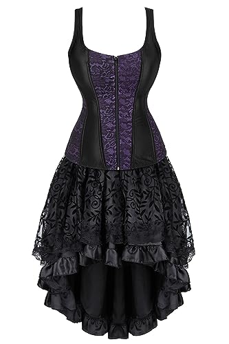 Vsadsau gotisk korsett klänning kvinnor remmar överbyst bustier väst med spetskjol set vintage Corselet, 2928lila7056svart, 6XL
