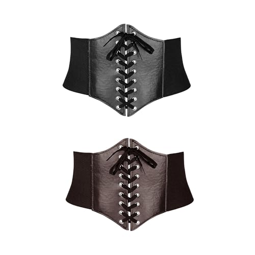 WERFORU 2 Stycken Kvinnor Midja Korsett Tied Waspie Bälte Halloween Elastiskt Brett för Klänningar