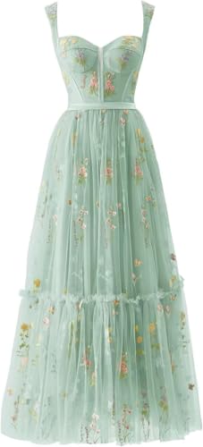CheJooe Dam blomma broderad balklänningar spets tyll brudtärna klänning en linje korsett formell kväll balklänningar fe bröllop långa klänningar, gRÖN, XL