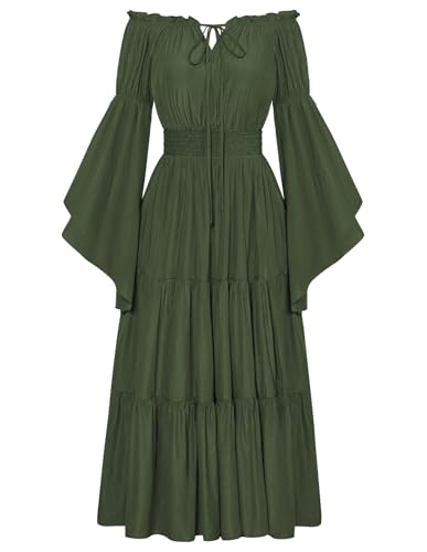 Skarlet Darkness damer renässans maxiklänning medeltida axellös snörning korsett klänning, Olivgrön, M