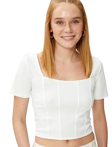 Koton Dam korsett detalj fyrkantig hals crop t-shirt blus, Vit (00), XL