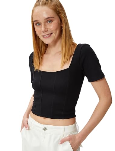 Koton Dam korsett detalj fyrkantig hals crop t-shirt blus, Svart (999), XL