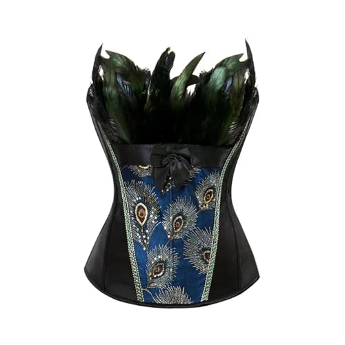 DYYEUAVT Korsetter för kvinnor topp gotisk påfågel fjäder korsett vintage överbystbustier, Svart, S
