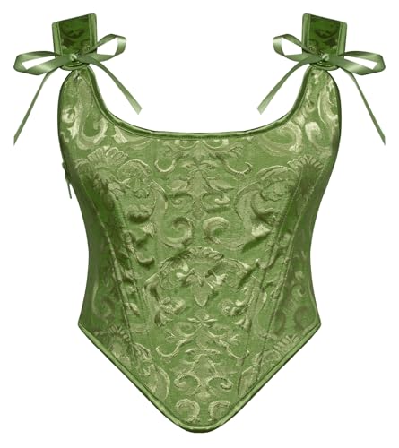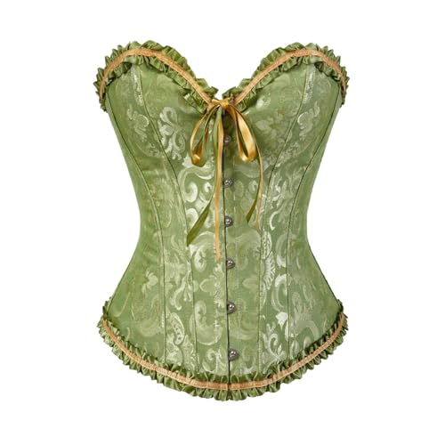 ZPFDSG Korsett-topp för kvinnor, sexiga korsetter, bustier, blommig spetstopp för kvinnor, blommönster, korsett, underkläder i vintagestil, satin, överbyst-korsett, plusstorlek (färg: grön, storlek: