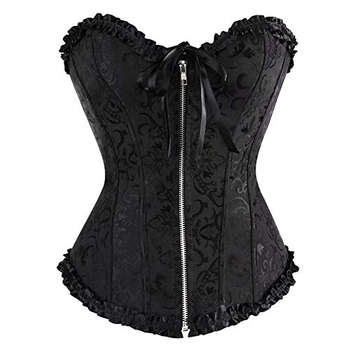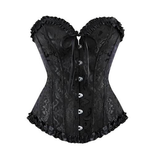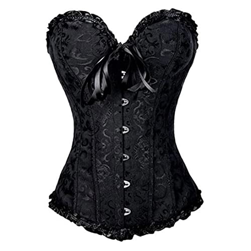 ZPFDSG Korsett-topp för kvinnor, sexiga korsetter, bustier, blommig spetstopp för kvinnor, blommönster, korsett, underkläder i vintagestil, satin, överbyst-korsett, plusstorlek (färg: svart, storlek: