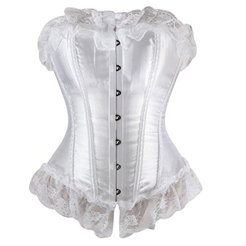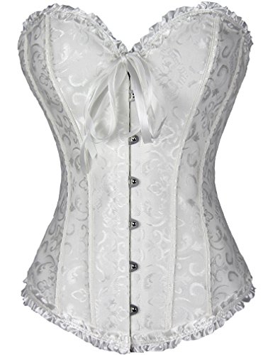 Dreamburn bustier korsetter brudunderkläder snörning satin-bandskorsett dam gotiska korsetter över bysten bodysuit vit, Small (30-32)