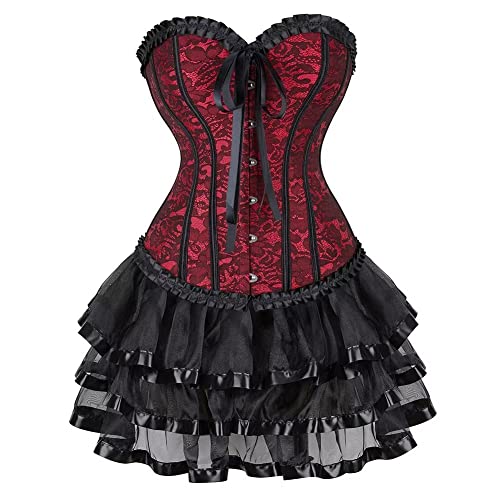 Corset klänning Bustier Overbust kvinnor Sexy Klassisk with Tutu Tulle kjol Basques and korsetter plus storlek Röd M