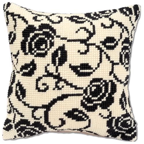 Vervaco Blackworks blommor design korsstygn kudde, flerfärgad