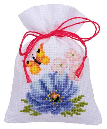 Vervaco miniatyr fjäril och blommor siffertmönster förpackning-stickförpackning i räknad korsstygn, bomull, flerfärgad, 8 x 12 x 0,3 cm