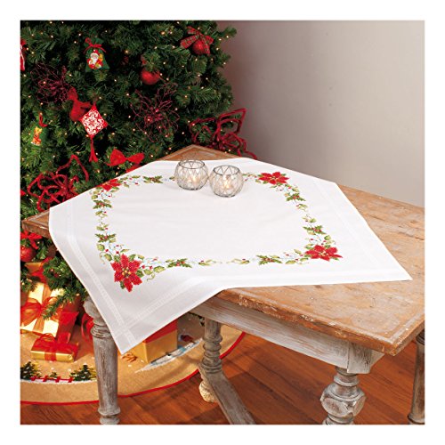 Vervaco röda blommor stickförpackning/bordsduk i förtryckt/förritat korsstygn, bomull, flerfärgad, 80 x 80 x 0,3 cm