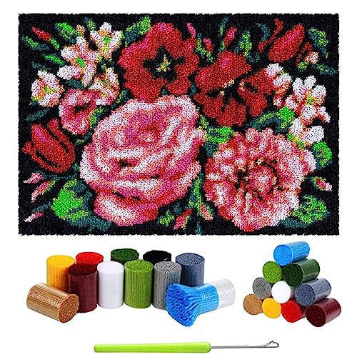 Länkmatta latch krok kit gör-det-själv gobeläng matta att knyta själv, knutset korsstygn set matttillverkning handarbete för nybörjare vuxna barn, 40 x 60 cm blomma