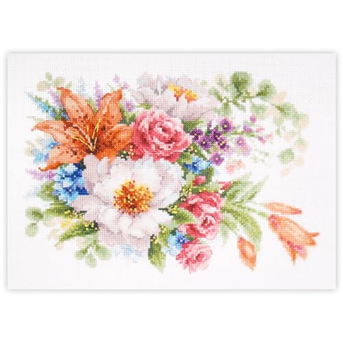 MARUSSIA Eva Rosenstativ korsstygn set bro/blommor, räkningsmönster, 33 x 25 cm