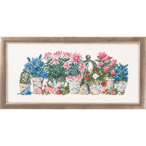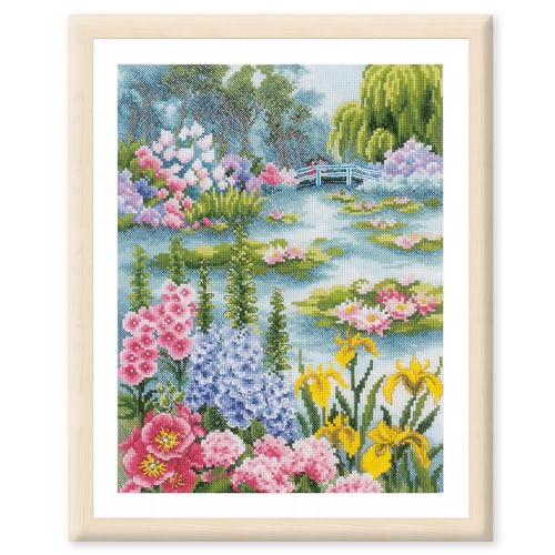 Lanarte Korsstygnssatser - Väggkonst Ca. 24 x 33 cm BLOMMOR LAGO - DIY Kit Vuxen Hantverk Dekoration Julklapp Korsstygn Komplett Kit