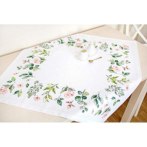 Luca-S FM018 blad och blommor korsstygn set bordsduk, bomull, flerfärgad, 75 x 75 cm