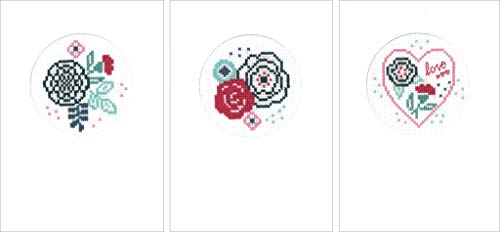 Vervaco moderna blommor, 3-pack gratulationskort för stickning i korsstygn, bomull, flerfärgad, 10,5 x 15 x 0,3 cm, 3 enheter