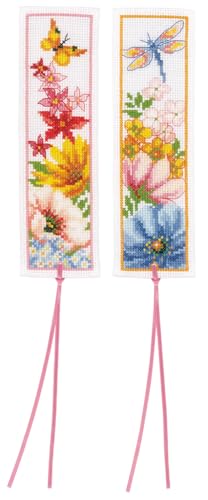 Vervaco grön fjäril på blommor bokmärken-siffraförpackning-stickförpackning i räknad korsstygn, bomull, flerfärgad, 6 x 20 x 0,3 cm