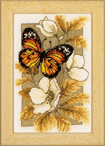 Vervaco miniatyr fjäril på blommor siffertemönstrad förpackning i räknat korsstygn, bomull, flerfärgad, 8 x 12 x 0,3 cm