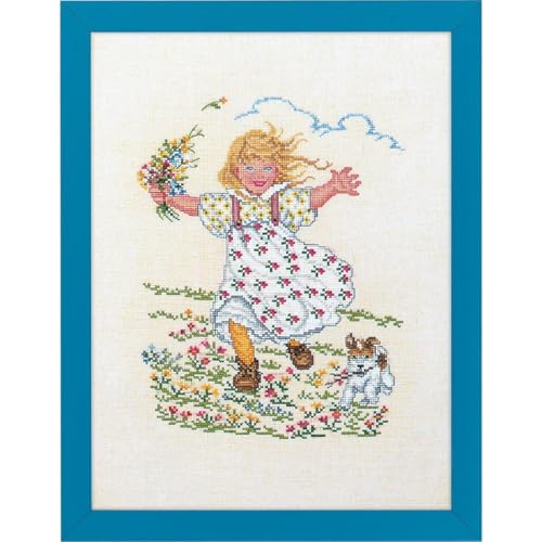 Eva Rosenstativ korsstygn set flicka med blommor räkningsmönster