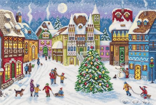 Awesocrafts Korsstygnssats, jul snö scen enkla mönster korsstygn broderi kit tillbehör, räknade (monterad)