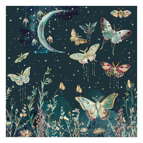 51buyoutgo Moth korsstygnssats, 11 ct antal roliga förtryckta räknade stämplade korsstygn broderi nålpunktsmönster kit för vuxna nybörjare, fjäril enkel avancerad korsstygn