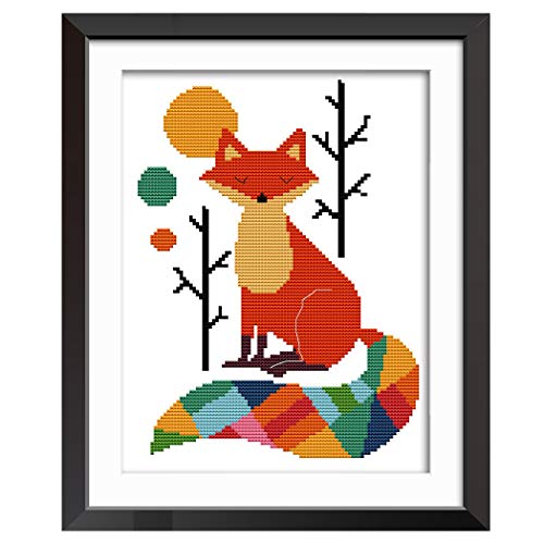 DIY korsstygn broderikit, 11CT färgglad räv kors söm broderi startkit, handgjord sömnad kit för vuxna (28 x 38 cm)