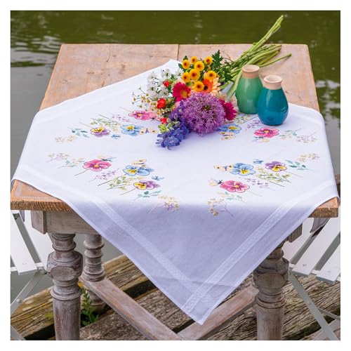 VERVACO Broderi Korsstygn Förtryckta Kit Bordsdukar Tänkande Violett Bordsset Kreativ DIY Ca. 80 x 80 cm Kreativa Hobbykit Vuxna Hem Dekor Cross Stitch Embroidery