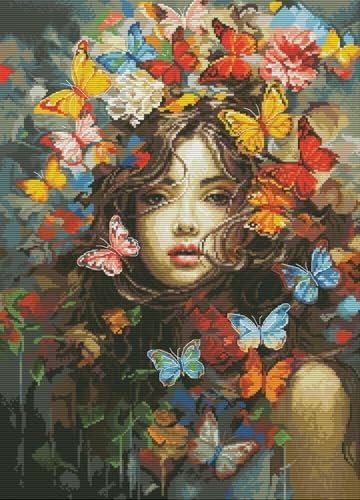 Cukol Förtryckt Broderikit Broderi Korsstygn Mönster Kit För Nybörjare,Fjäril Stämplade Broderier Korsstygnskit Korsstygnsmönster Broderimönster Korsstygnssatser Stamped Cross Stitch Kits 36 x 36 cm
