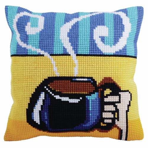 Collection D'Art Korsstygn kit: Kudde: Kopp kaffe, multi, 40 x 40 cm