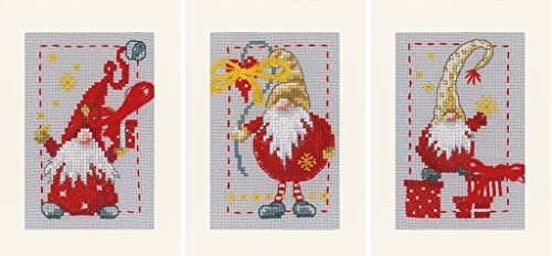 Vervaco Räknad korsstygn kit: Gratulationskort Kit: Jultomtar: Set med 3