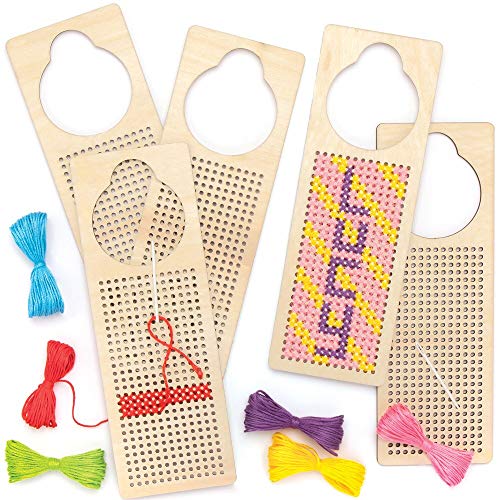 Baker Ross AT810 Skapa ett korsstygn trä dörrhängare kit, korsstygn för nybörjare och barnkonst och hantverksprojekt (paket med 4), diverse
