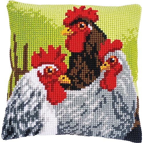Vervaco Korsstygn kudde kit tupp och höns, ecru, ca. 40 x 40 cm